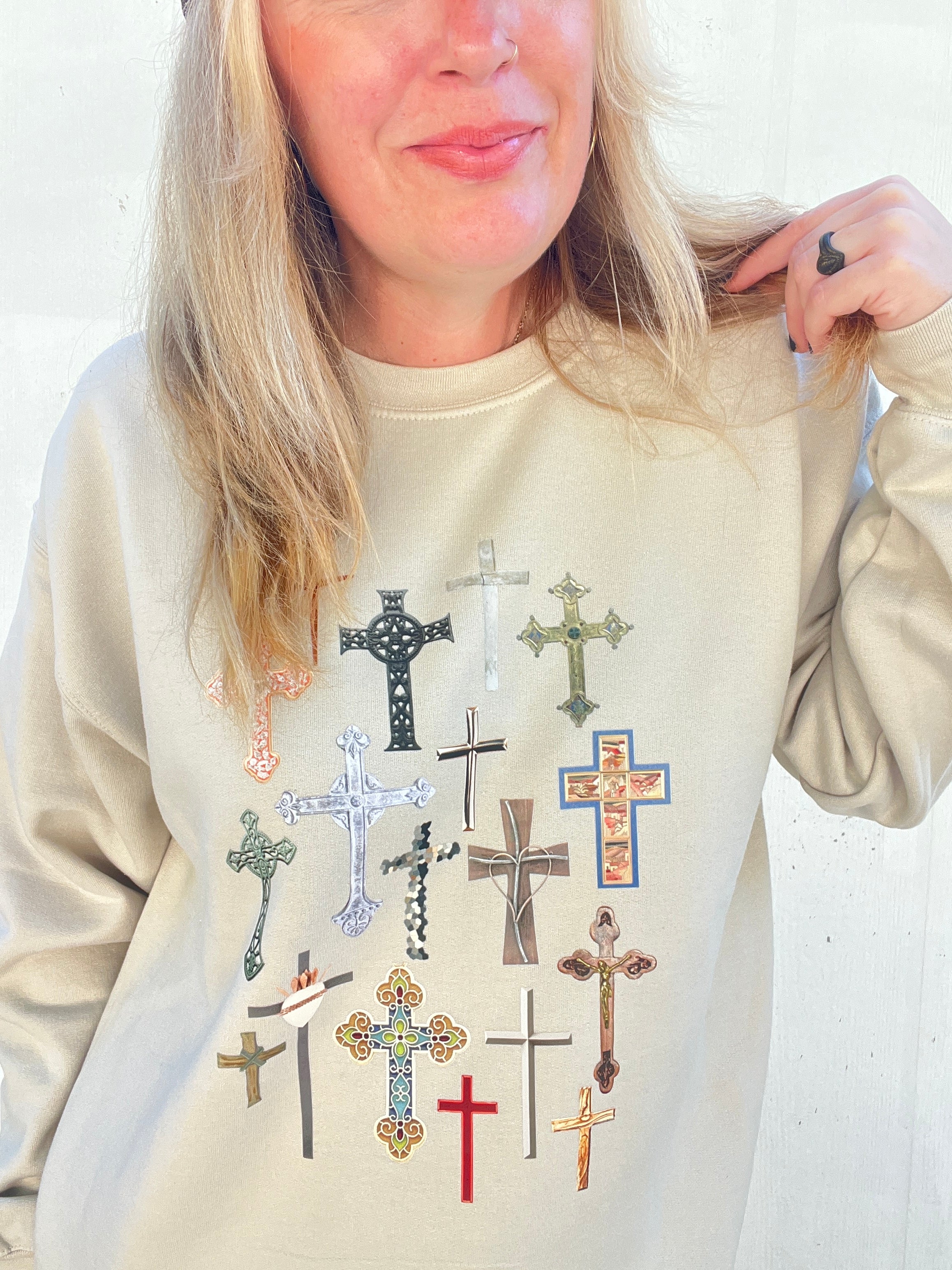 This Cross Wall Tee/Pullover features a striking graphic on a comfortable tan unisex pullover or tee, thoughtfully curated in Montgomery, Texas. Designed for everyday wear, it combines style and comfort with a meaningful design, making it a perfect addition to your wardrobe for support and inspiration wherever you go.