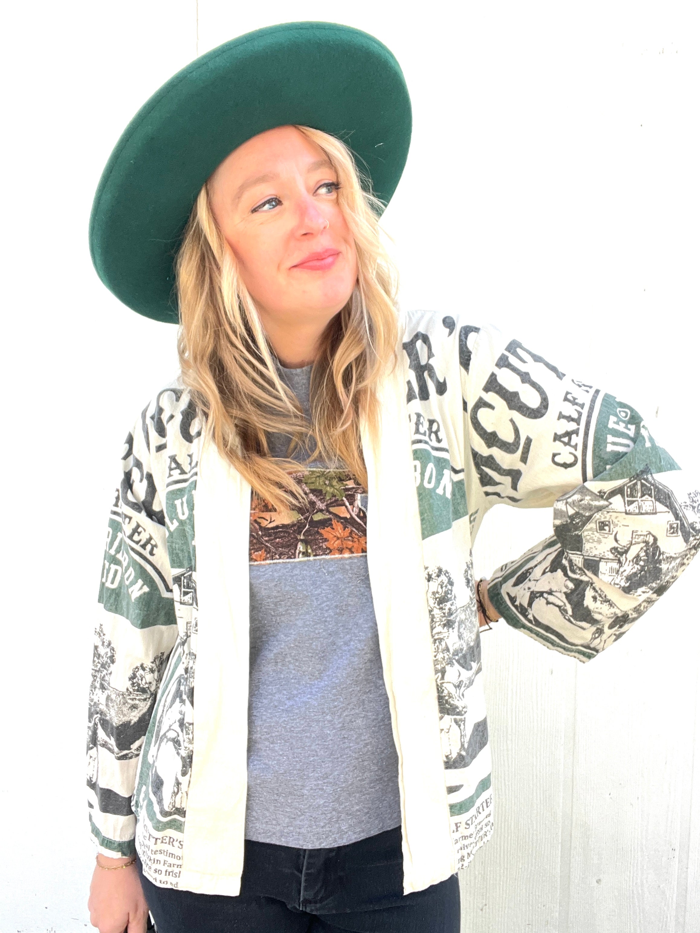 Unleash your wild side with this audacious Feed Bag Cardigan in striking cow print. Crafted from breathable linen, this fearless one-size piece layers effortlessly over any outfit, delivering bold style with uncompromising comfort. Perfect for those ready to make a statement and refuse to blend in.