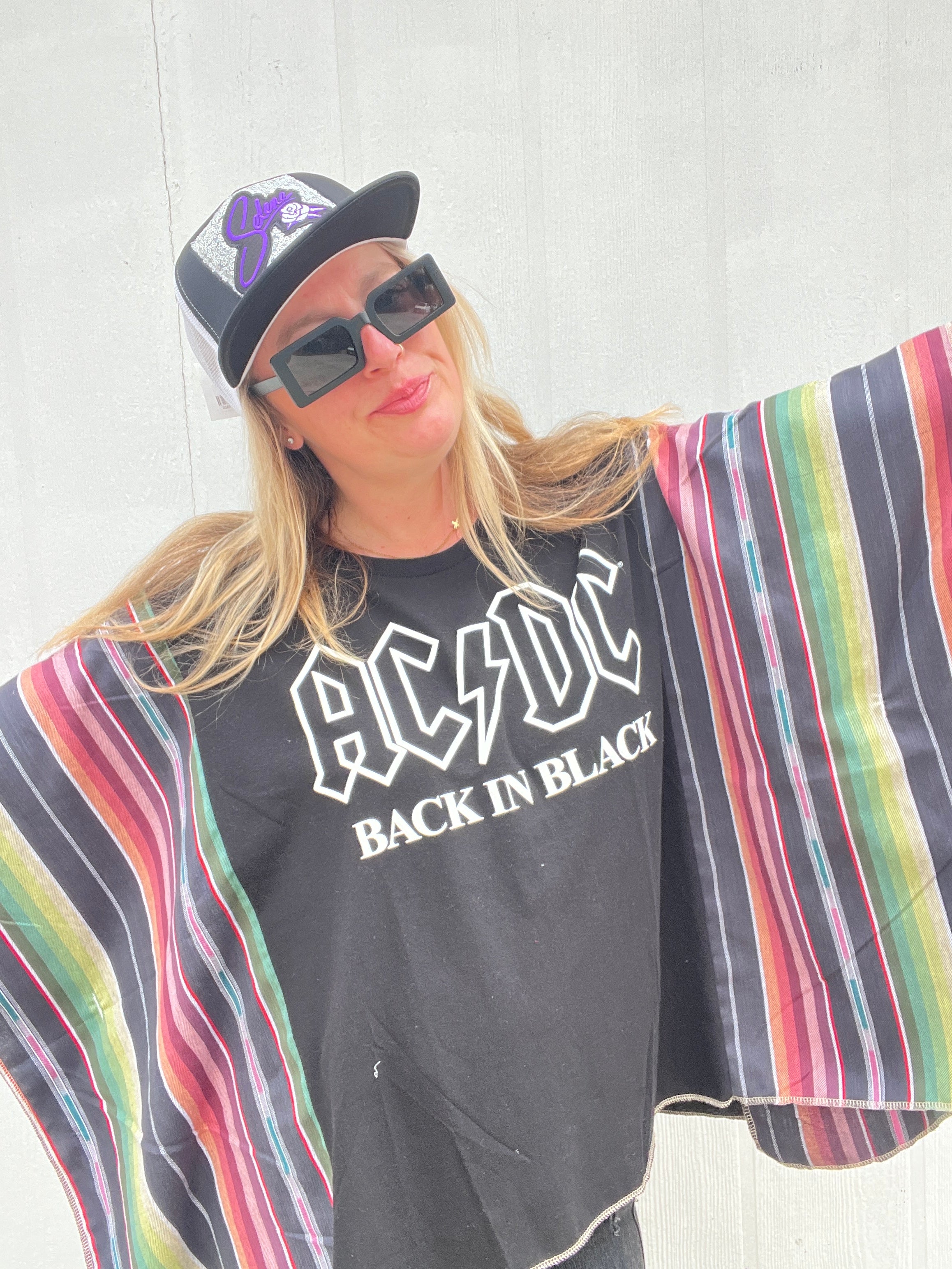 Featuring our RETIRED Noche serape, serged edges and tacked sleeves.
