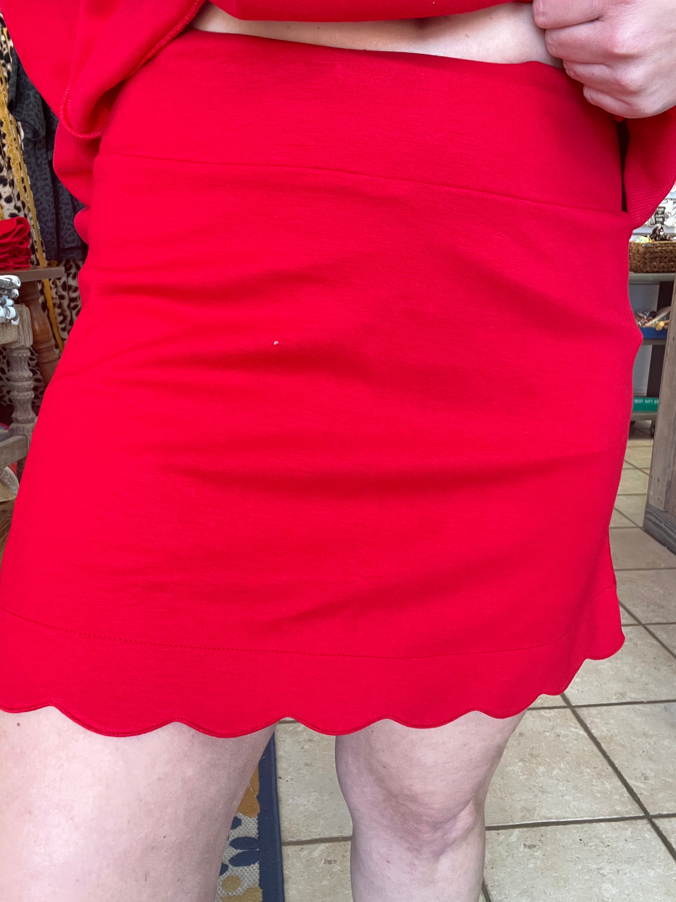 Experience the perfect blend of playfulness and poise with the High-Society Scalloped Skort.