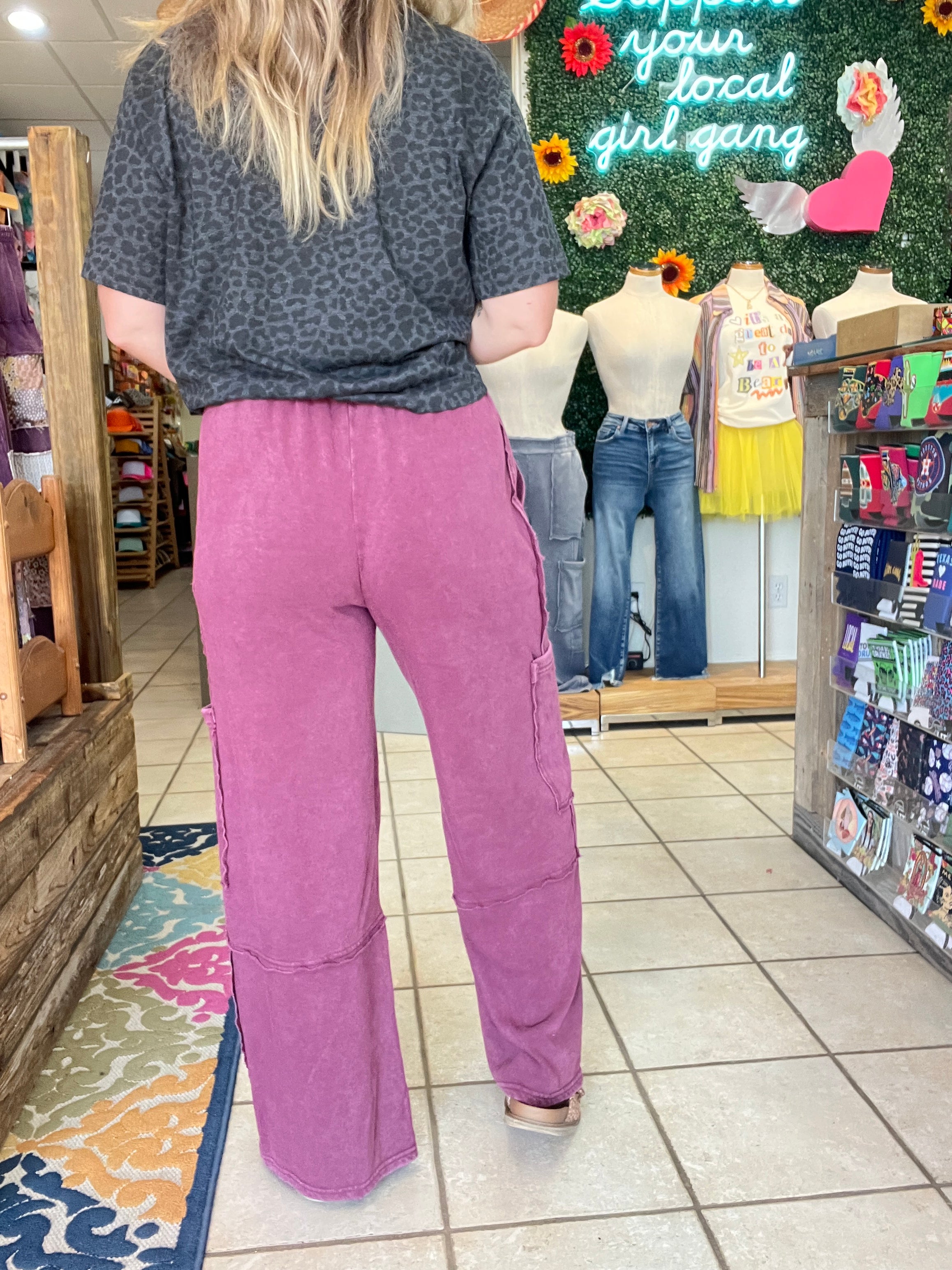 Meet your new wardrobe essential: the Weekend Wash Cargo Pants. Crafted from a luxurious acid wash fabric that feels as soft as it looks, these oversized lounge pants strike the perfect balance between comfort and function. Designed with roomy cargo pockets and an effortlessly relaxed fit, they’re versatile enough to take you from the sofa to the street in style. Pair them with a cozy hoodie for laid-back days or a sleek tank and sneakers for an on-the-go look — these pants do it all.