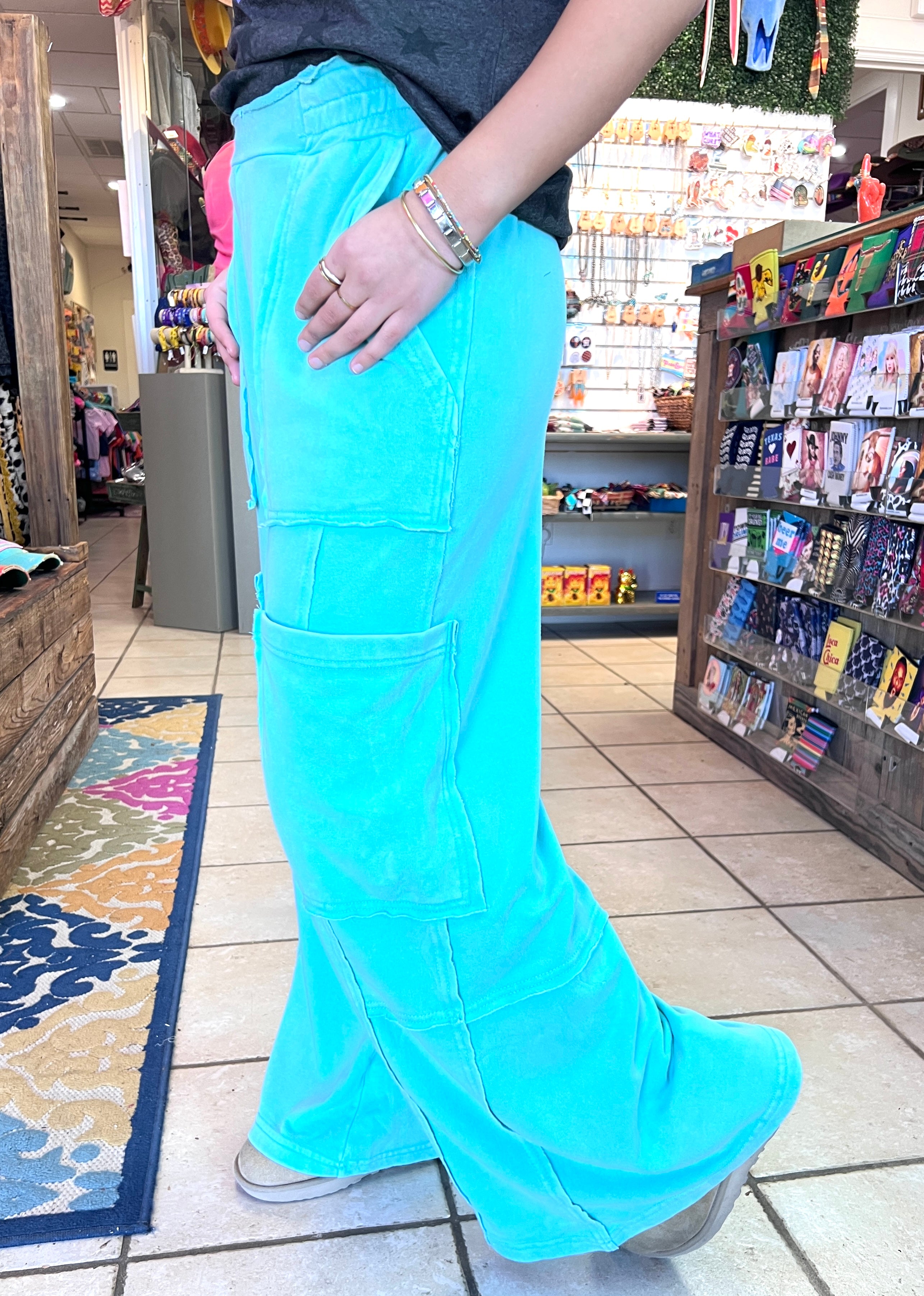 Meet your new wardrobe essential: the Weekend Wash Cargo Pants. Crafted from a luxurious acid wash fabric that feels as soft as it looks, these oversized lounge pants strike the perfect balance between comfort and function. Designed with roomy cargo pockets and an effortlessly relaxed fit, they’re versatile enough to take you from the sofa to the street in style. Pair them with a cozy hoodie for laid-back days or a sleek tank and sneakers for an on-the-go look — these pants do it all.