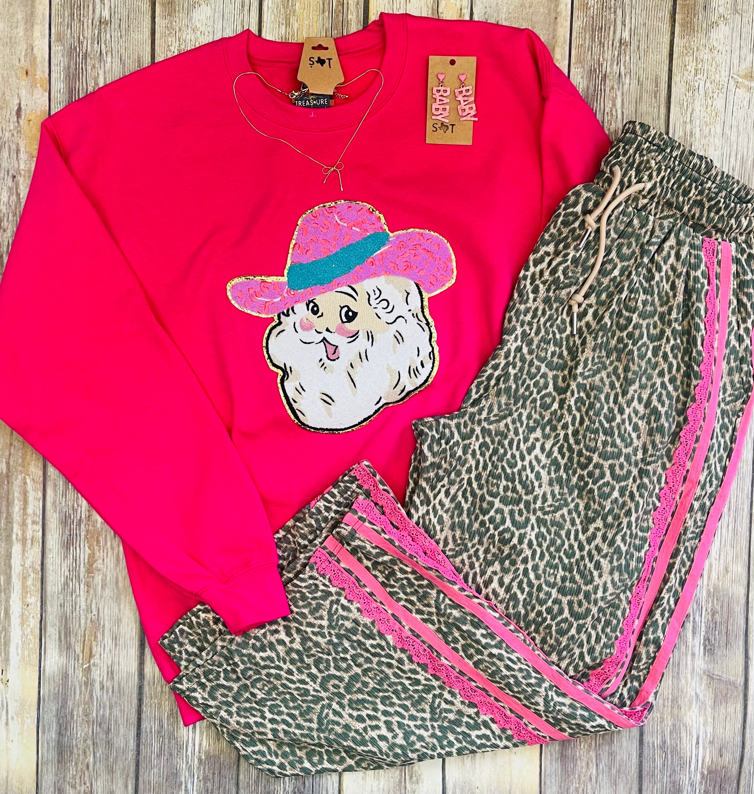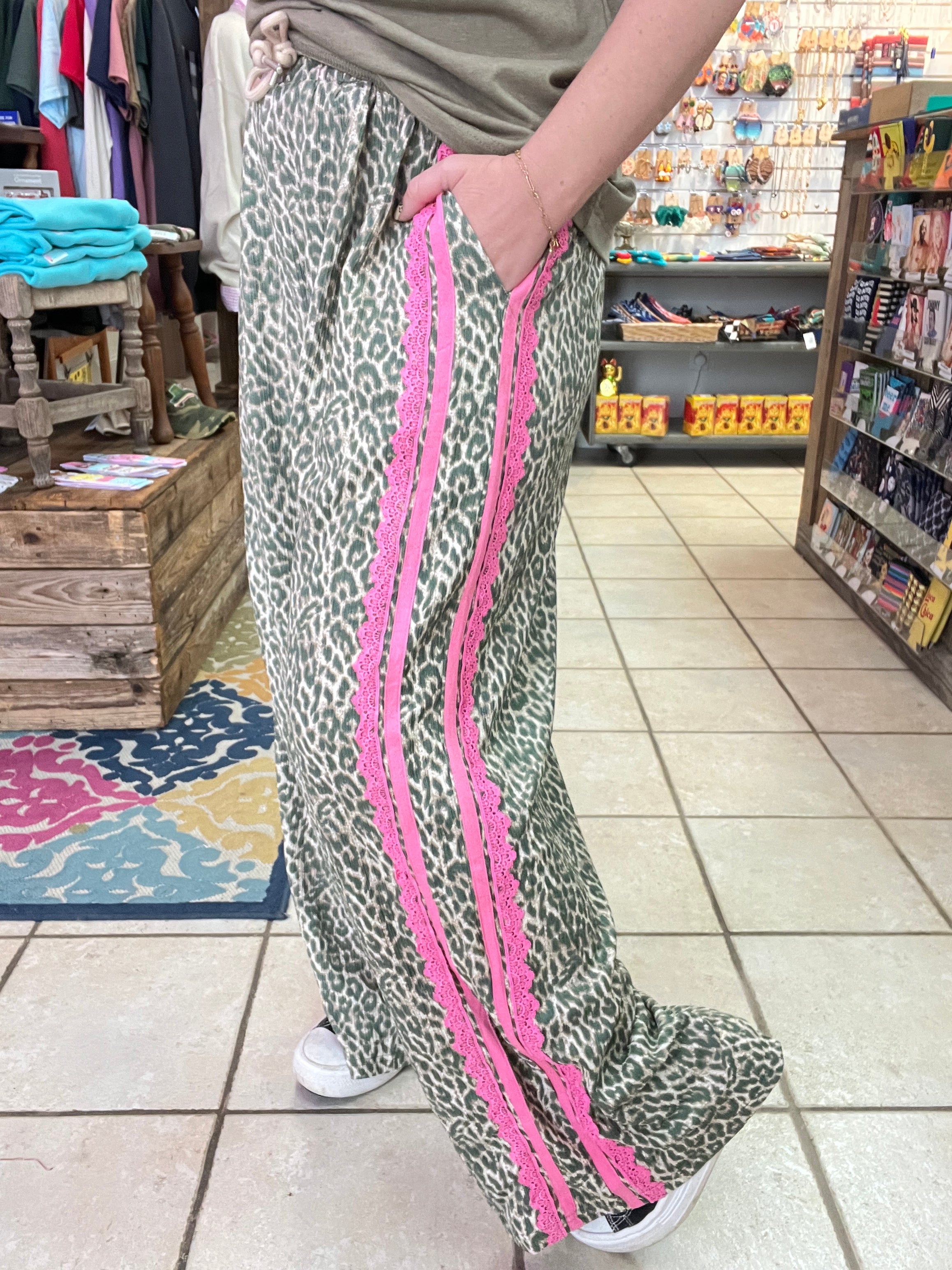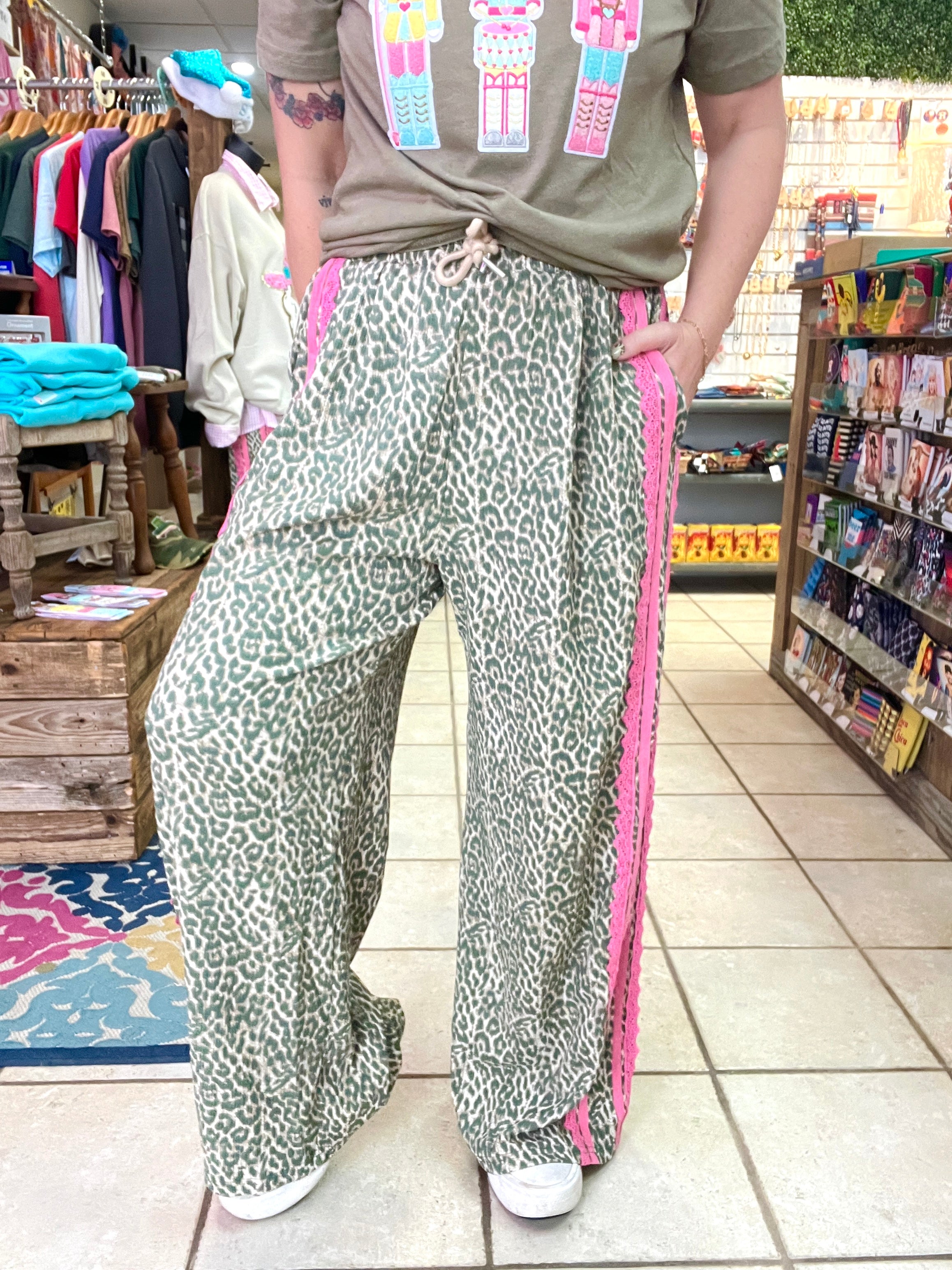 Bold meets beautiful with our Leopard Lace Track Pants — the perfect mix of sporty edge and feminine flair. Designed with a classic leopard print and mixed-media lace stripes down the sides, these pants bring texture, movement, and a touch of romance to an everyday essential.
