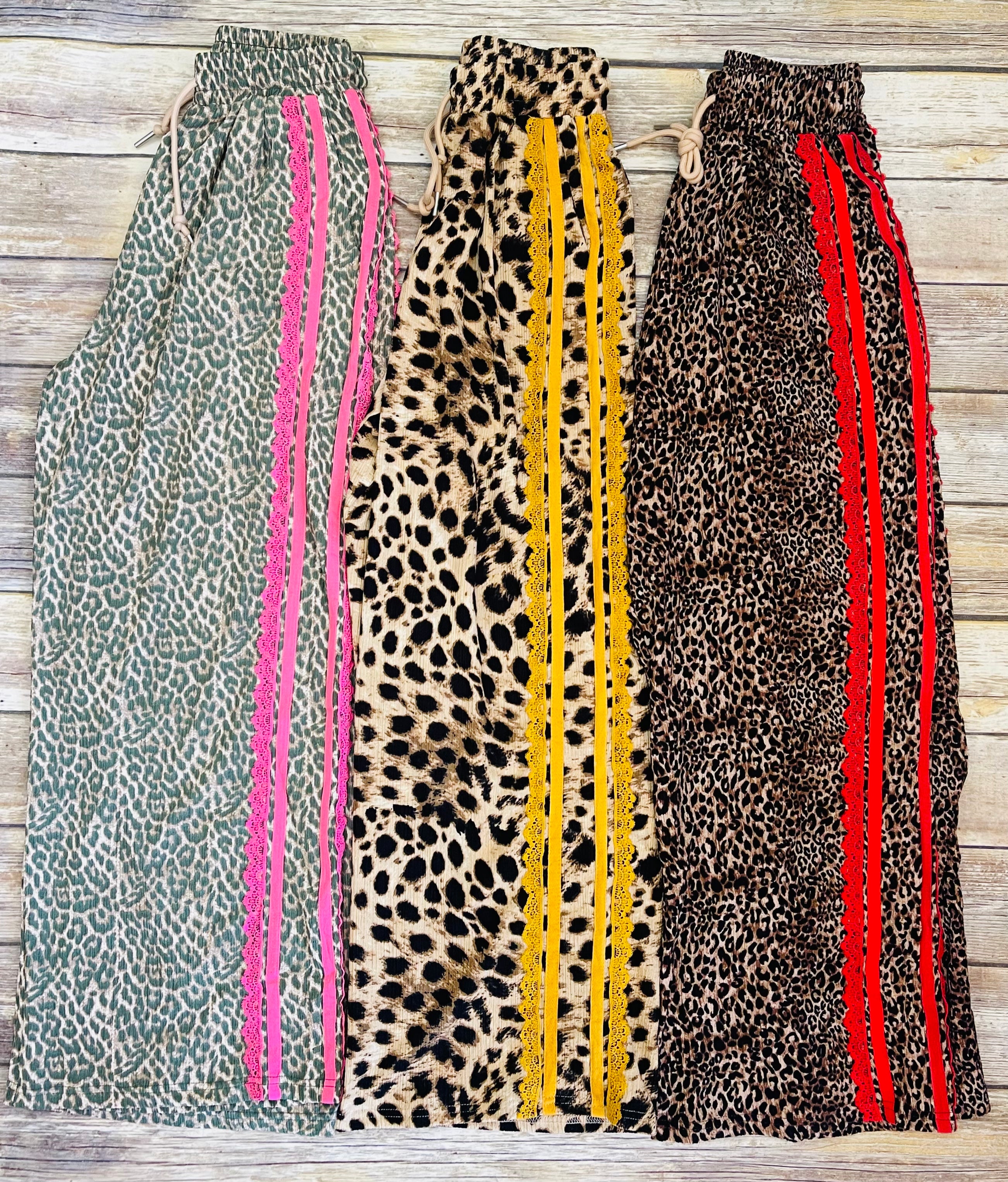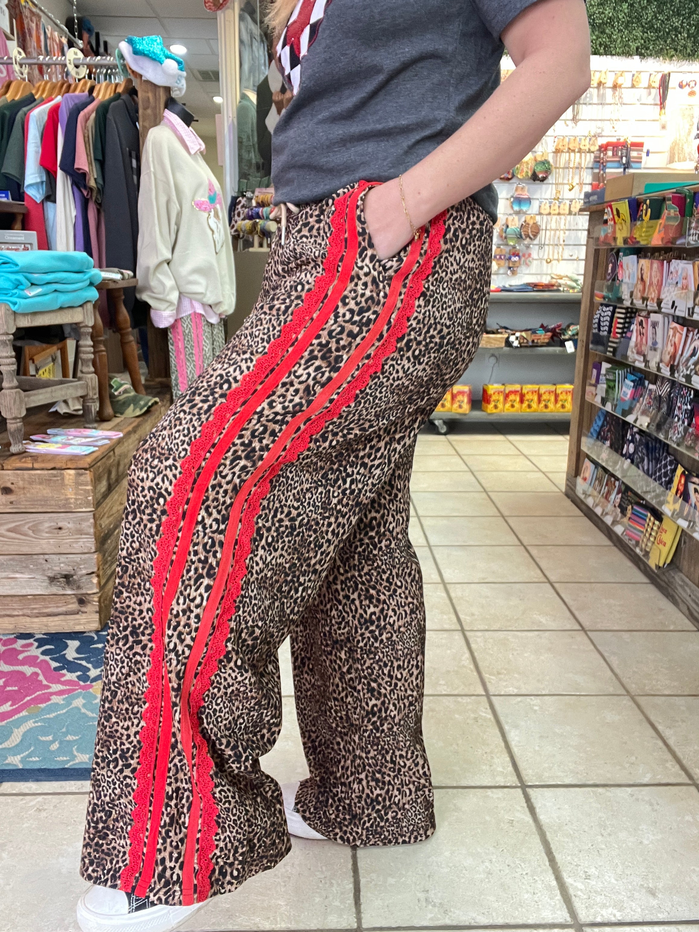 Sporty meets sassy in our Wild & Laced Trouser Pants — where bold animal print gets a feminine twist with lace athletic stripes down the sides. These statement pants are made to stand out while keeping things comfy and effortless.
