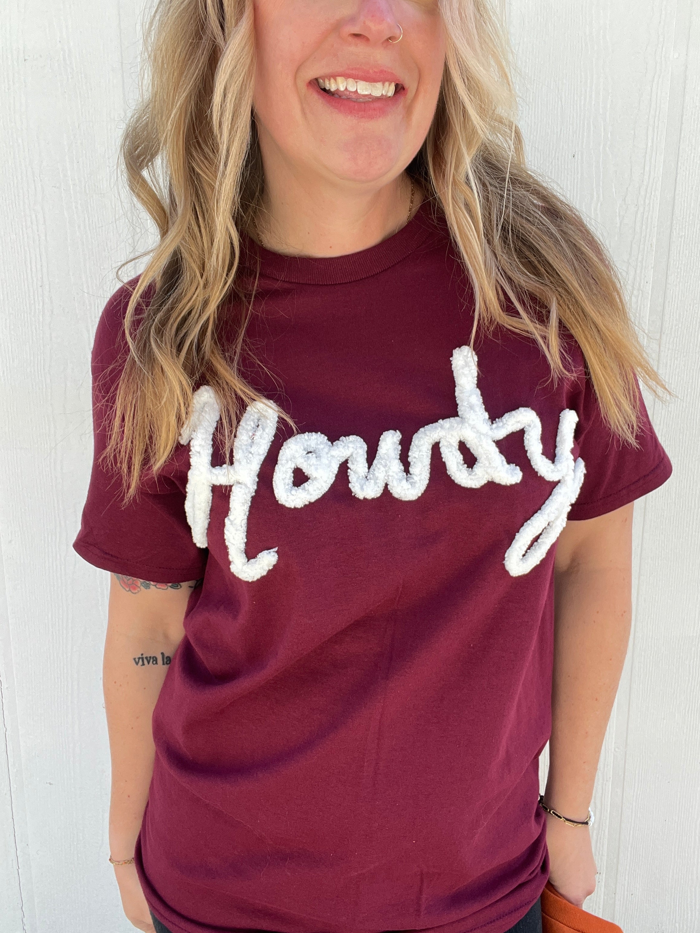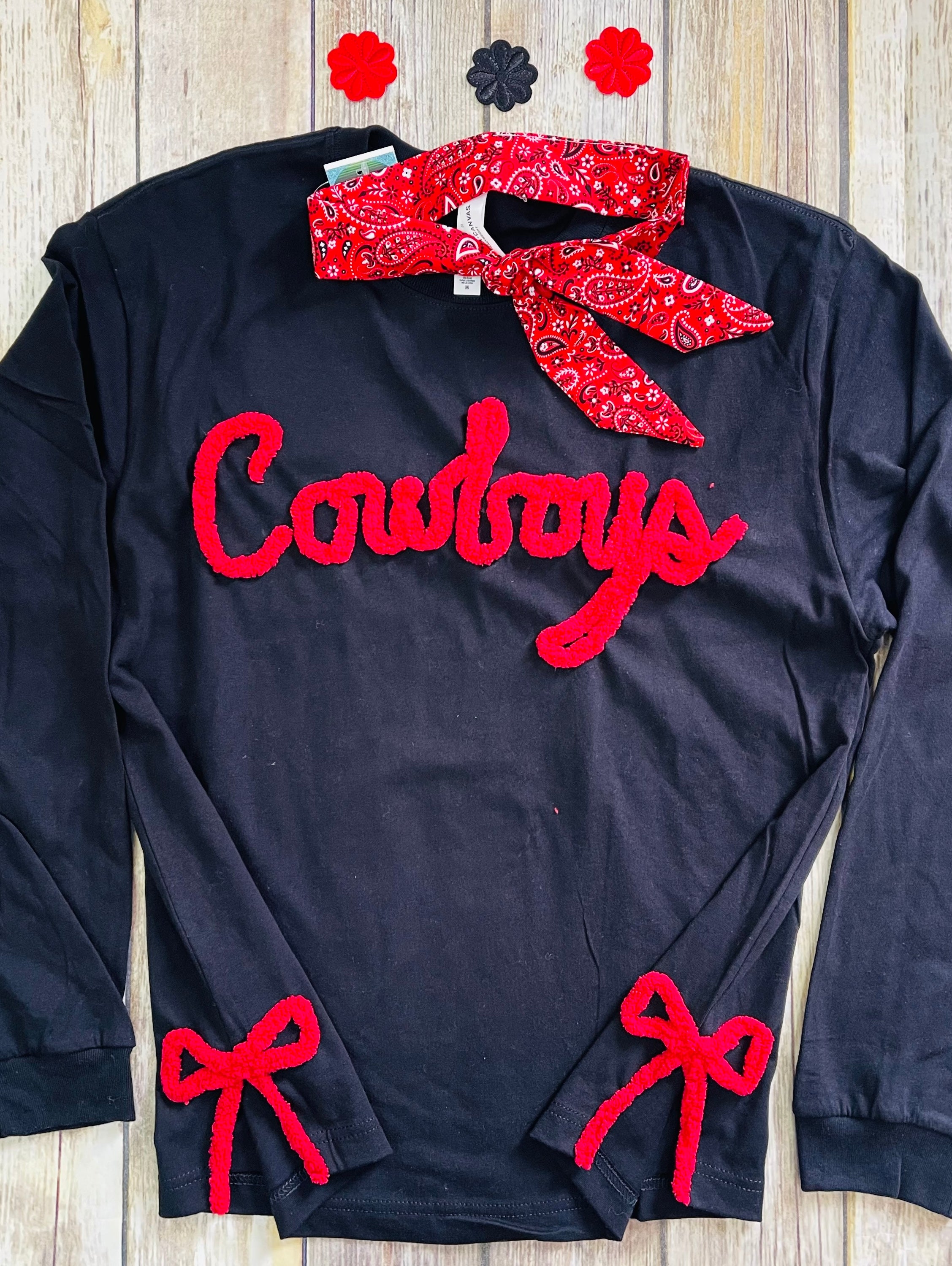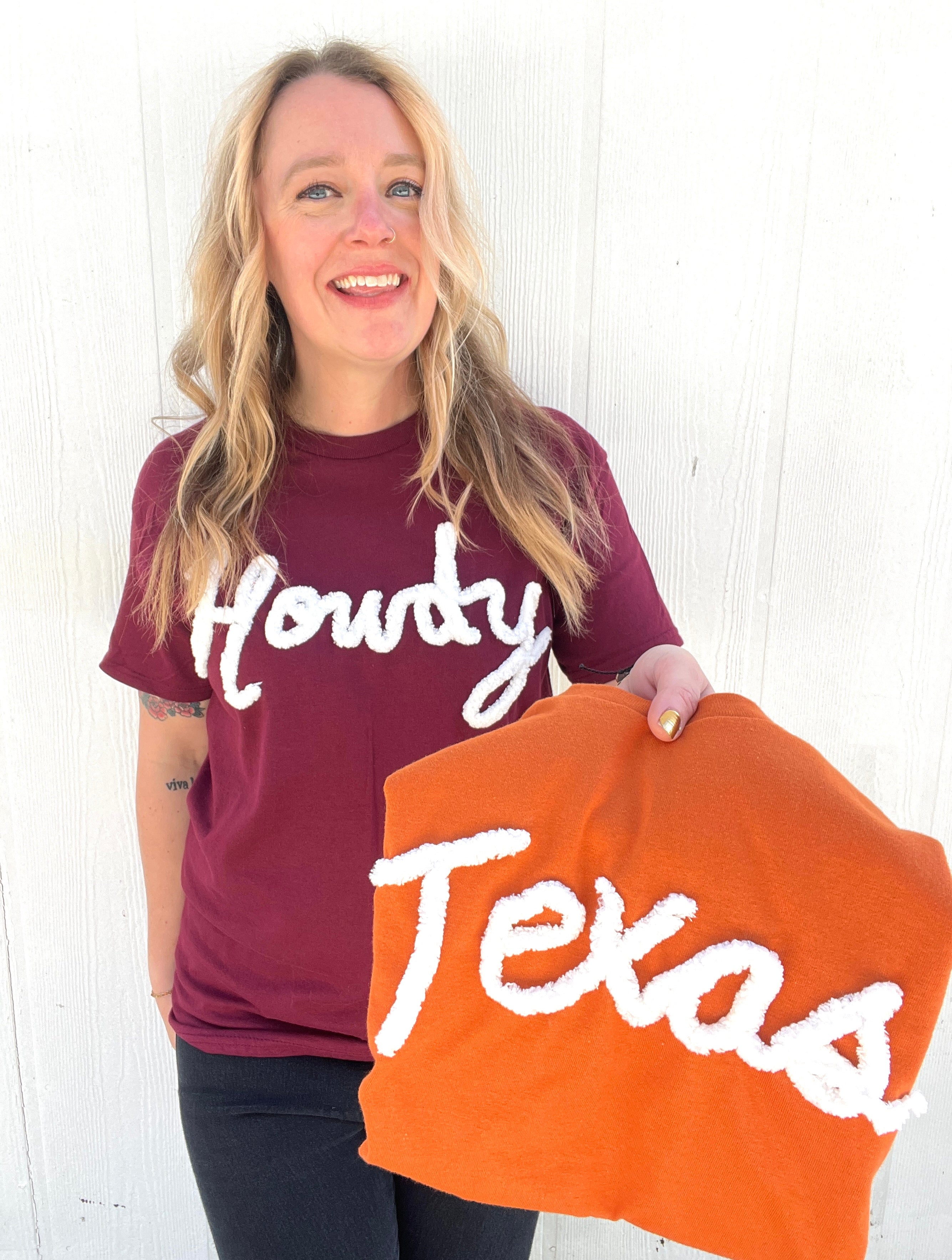 This shirt features our custom cursive hand drawn yarn (& stitched!) to make it a one of a kind treasure.