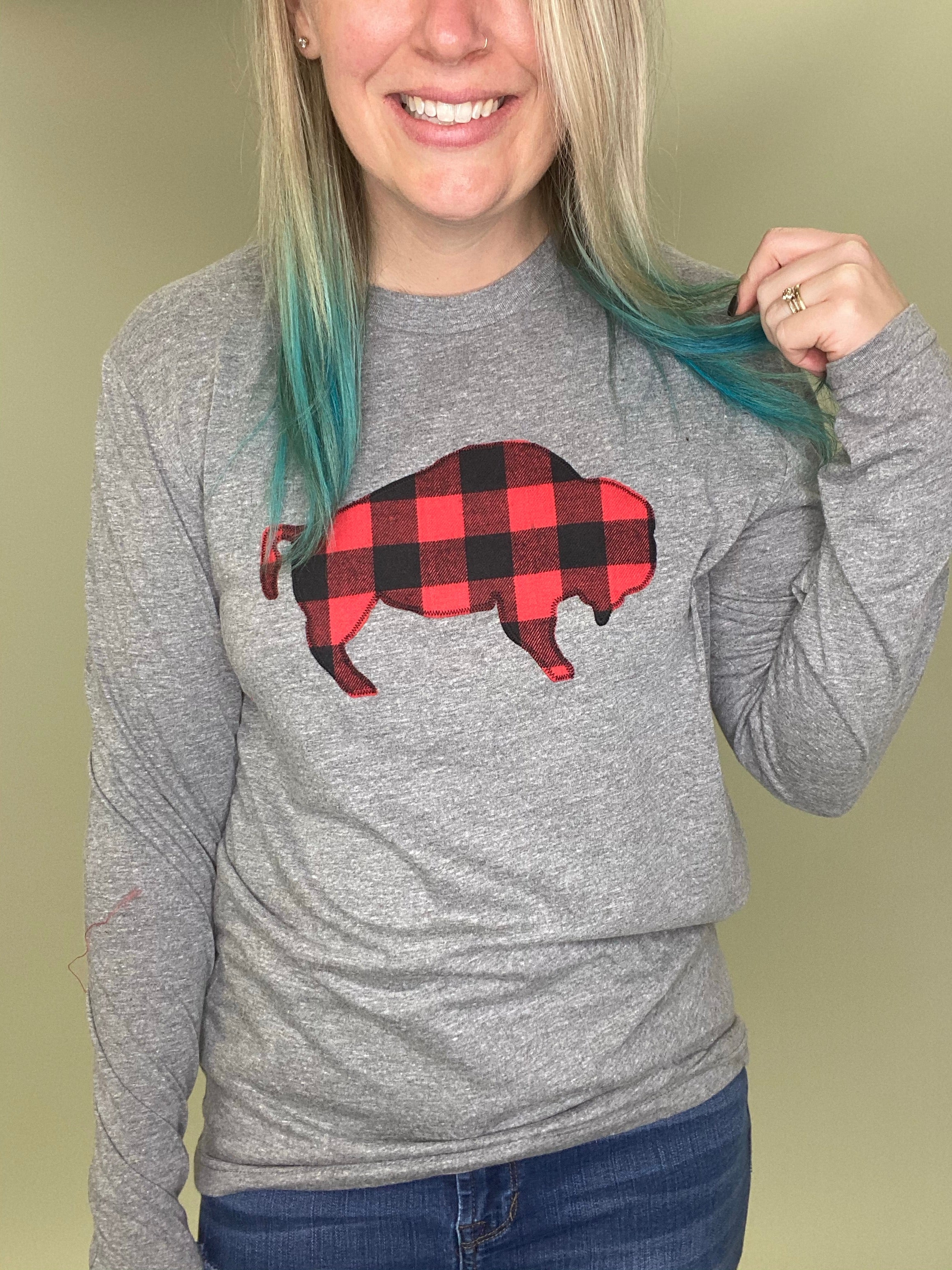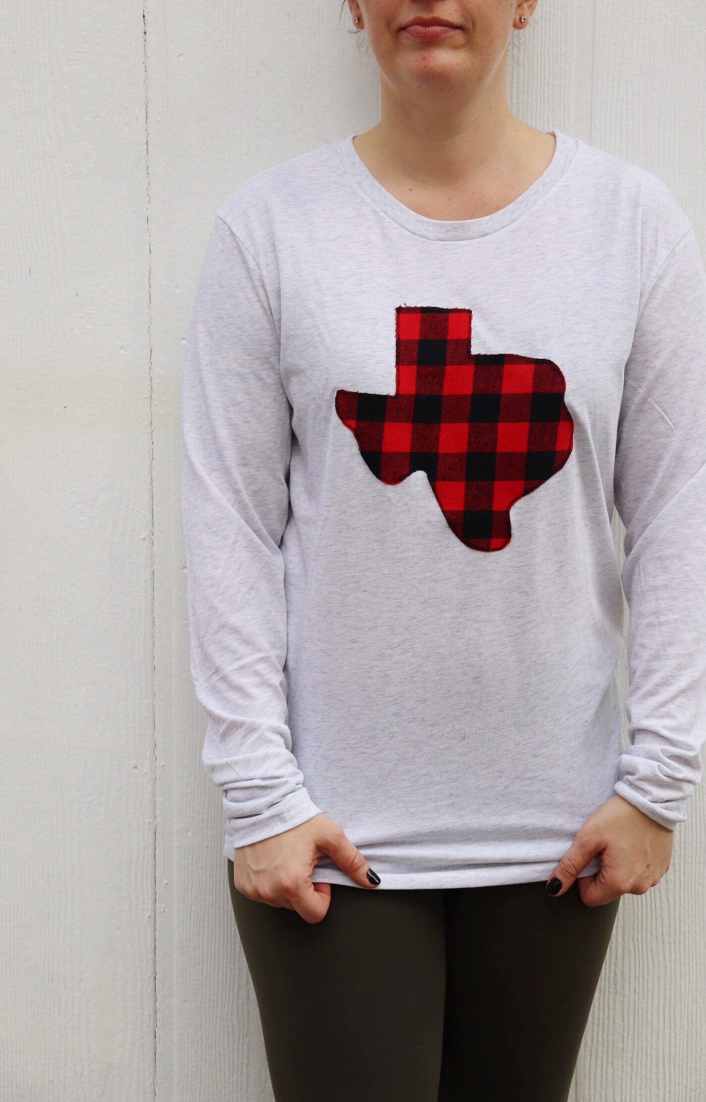 Shape on item pictured is our Texas on olive, heather white or black long sleeve